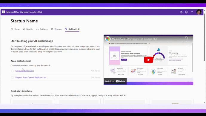 Asistente potenciado por IA en Microsoft for Startups Founders Hub